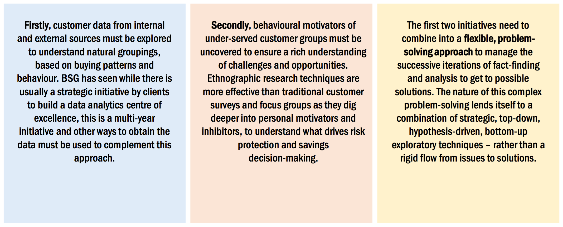 The impact from this multi-disciplinary approach is a set of customer insights to build engagement and support the retention of primary bank relationships:
